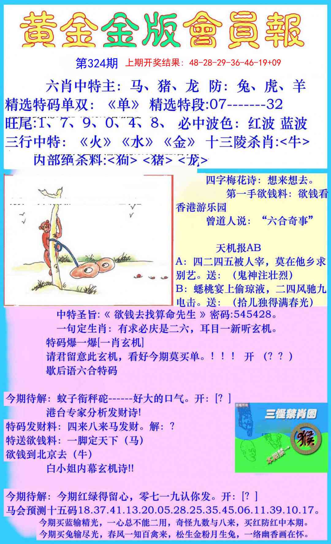 | 324期:〖六合之家〗绝杀一尾全年无错 |