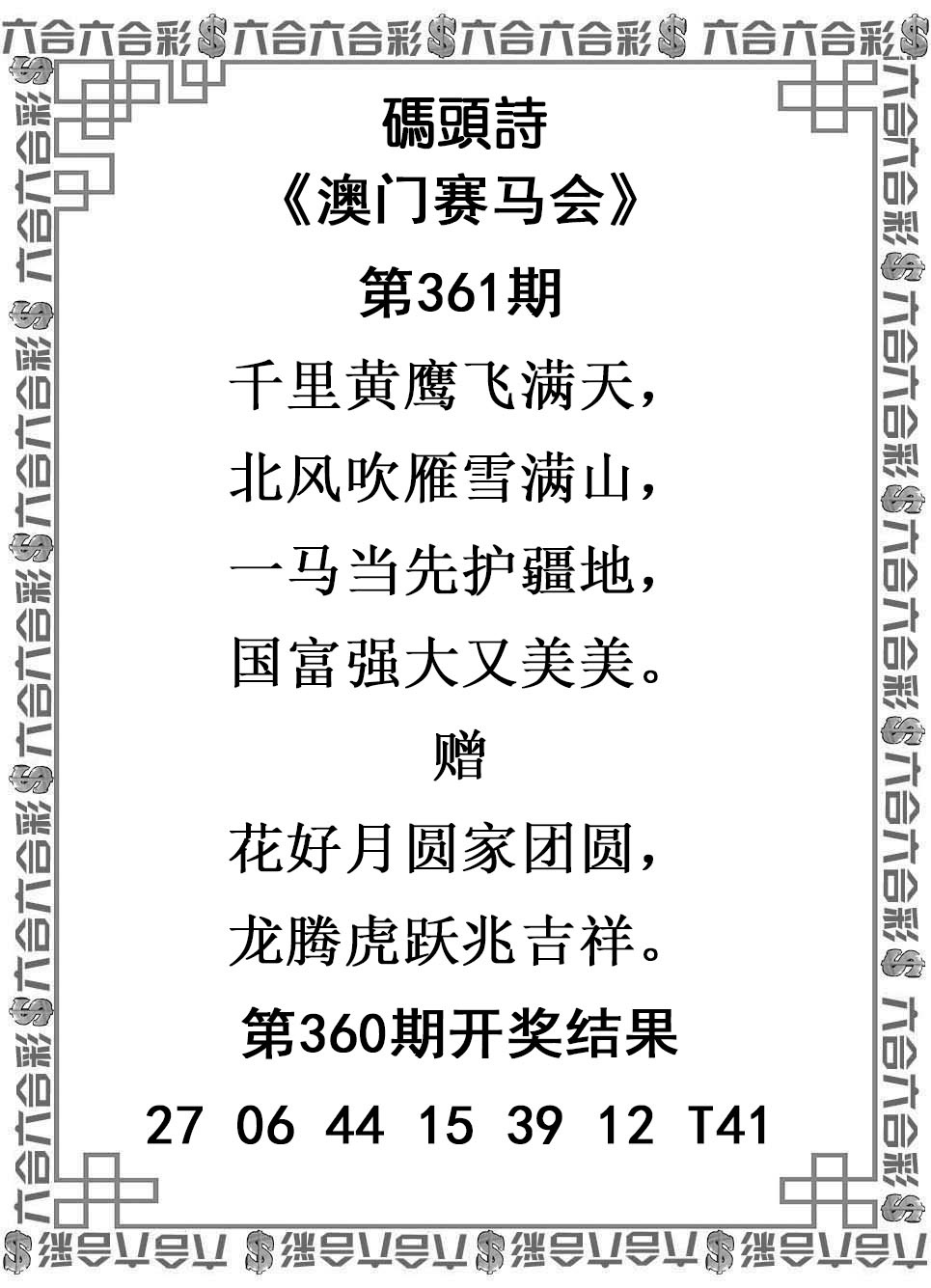 361期澳彩码头诗